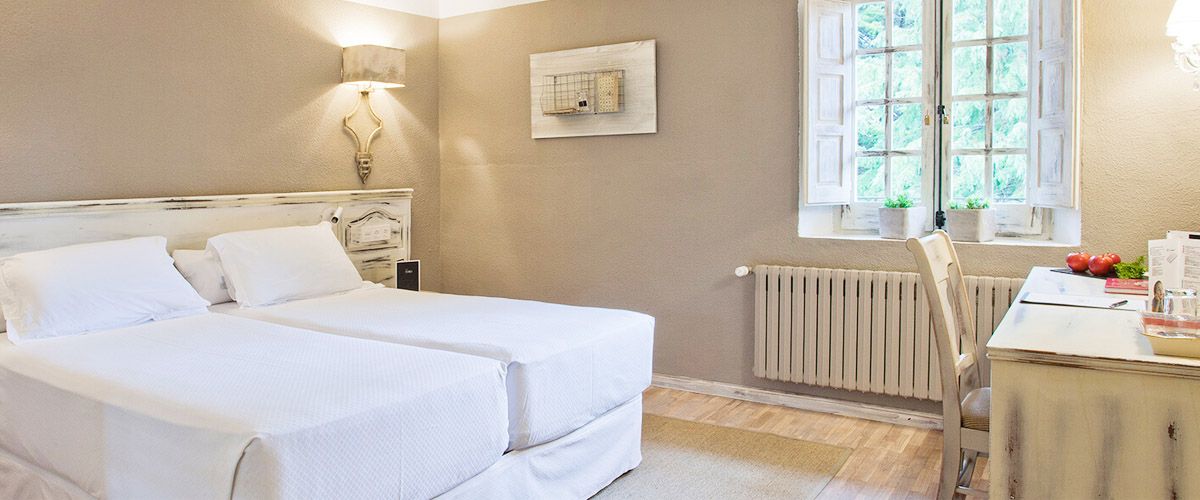 Alojamiento con carácter y comodidadHabitaciones diseñadas para ofrecer el máximo confort, manteniendo la esencia rústica original con un toque moderno y sofisticado. Todas las habitaciones están equipadas con TV gran formato con canales via satélite, climatización individual, caja fuerte, baño completo con amenities y secador de pelo, minibar, teléfono directo y servicio de habitaciones.